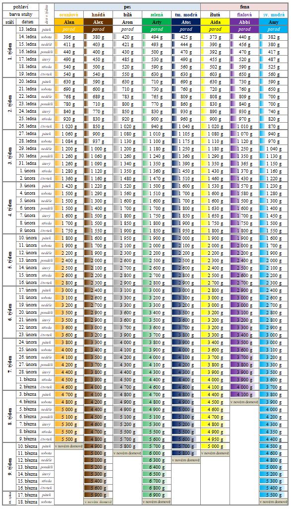Vrh A - leden 2017 - Váhové přírůstky štěňat